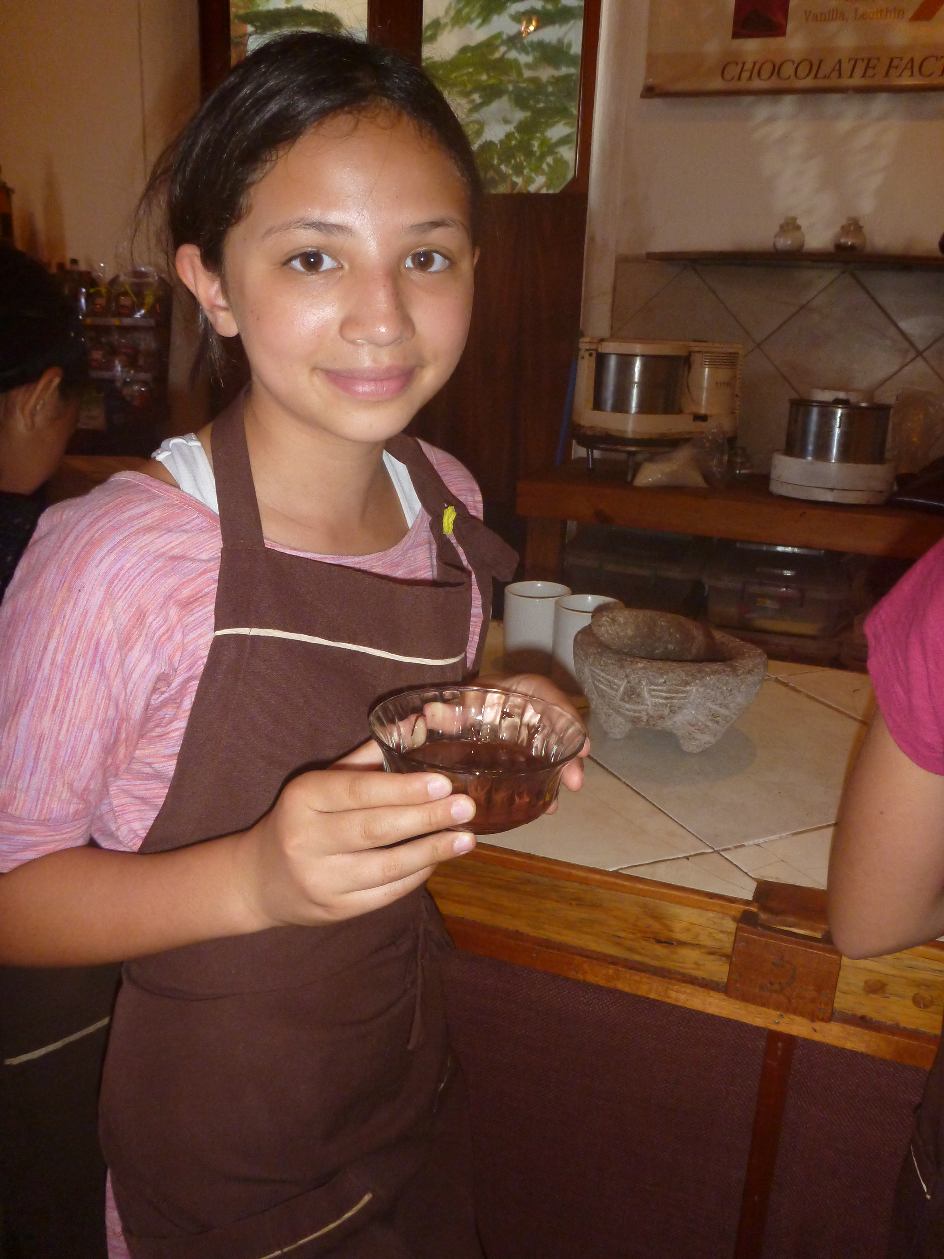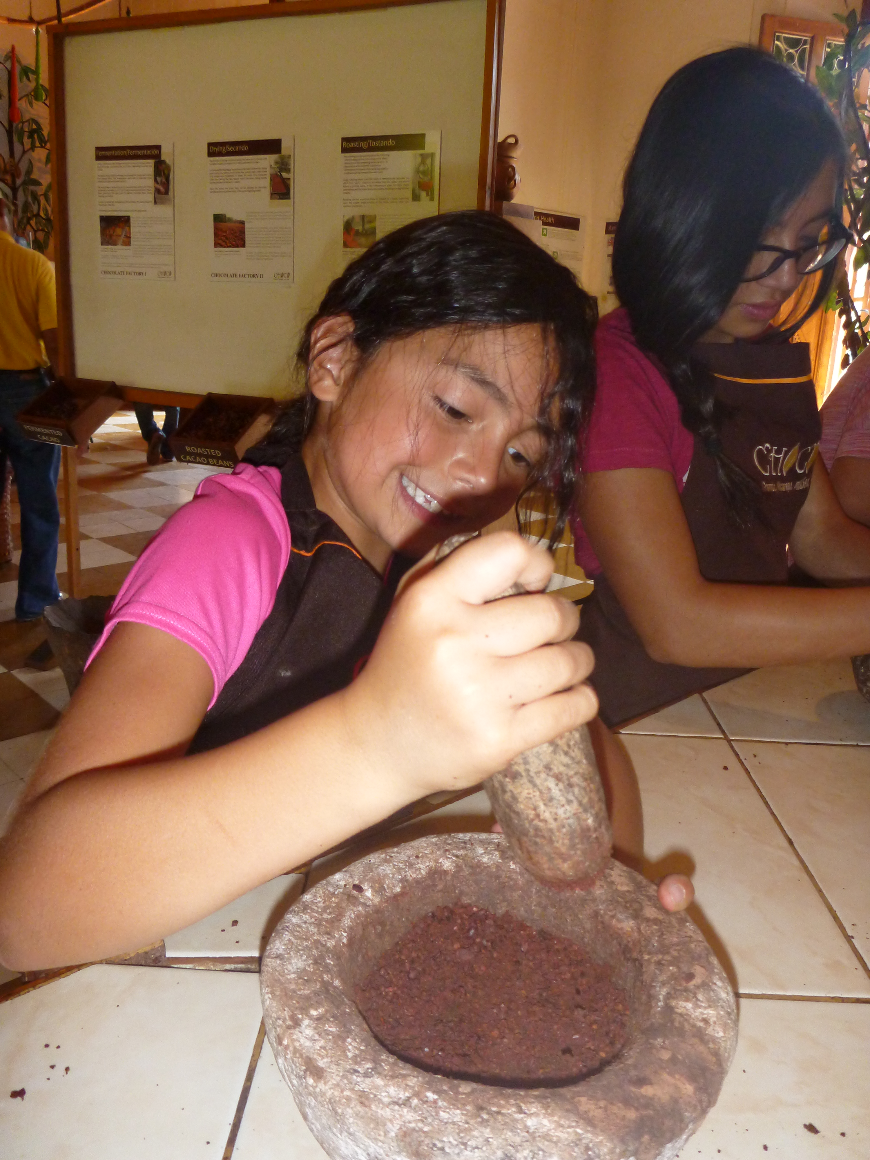 Chocolate making is a lot of fun and it tells you a lot of different things about cacao trees, beans, and the bean pods. Some of the things there told us were: there are 20-60 cocao beans in a pod, or the bean pods are ripe when they are yellow. It was a very fun, interesting activity to try.